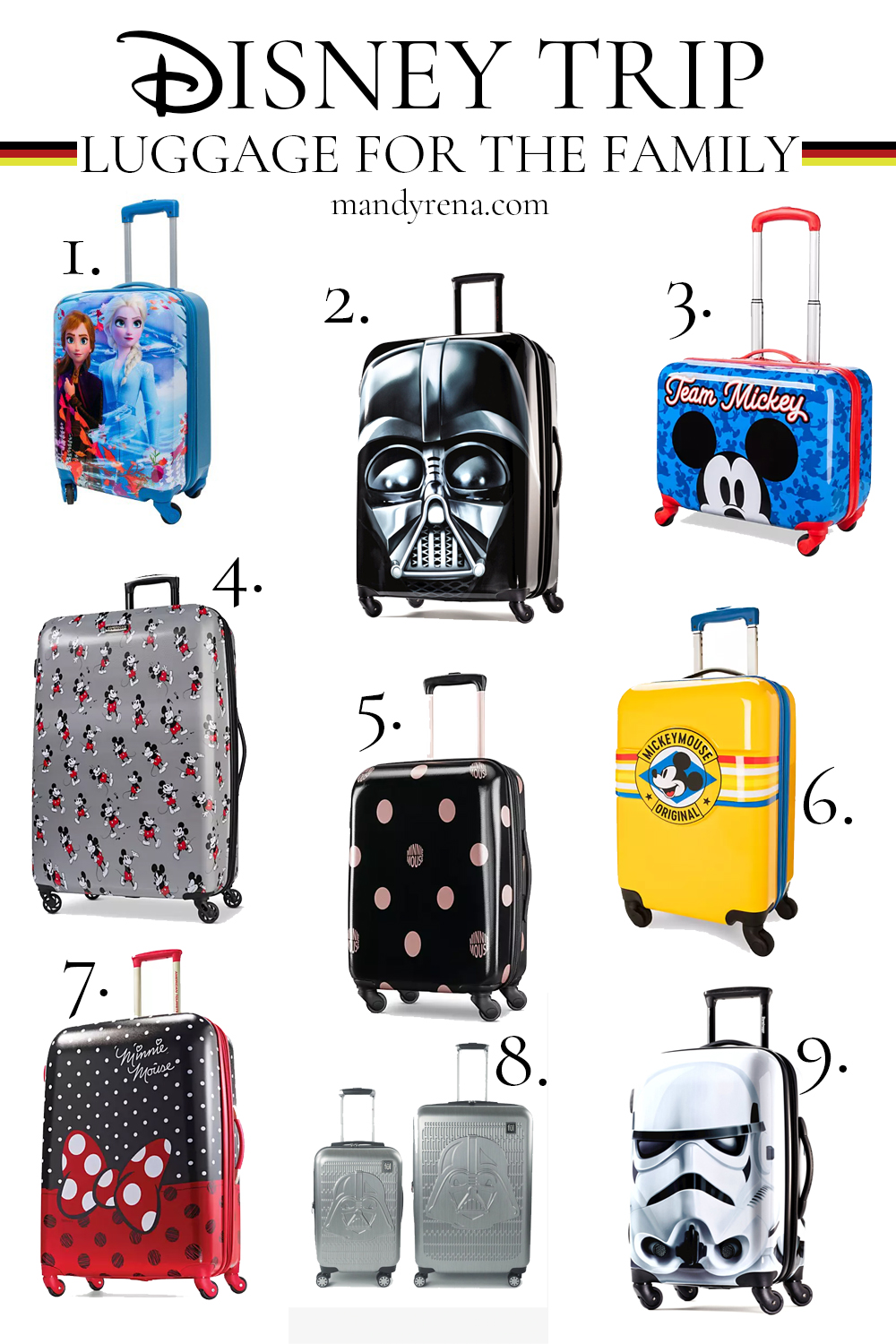 This post may contain affiliate links Disney Frozen 20″ Kids’ ABS Suitcase American Tourister Star Wars Darth Vader 28″ Hardside Suitcase Mickey Mouse Rolling Luggage – Small Mickey Mouse Rolling Luggage by American Tourister – Large Minnie Mouse Dots Rolling Luggage by American Tourister – Small Mickey Mouse Rolling Luggage Minnie Mouse Bow Luggage –…